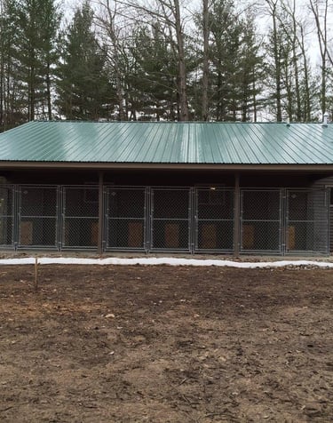Family-owned pet boarding kennel nestled in the woods on the banks of the Pine River in Oscoda, MI.